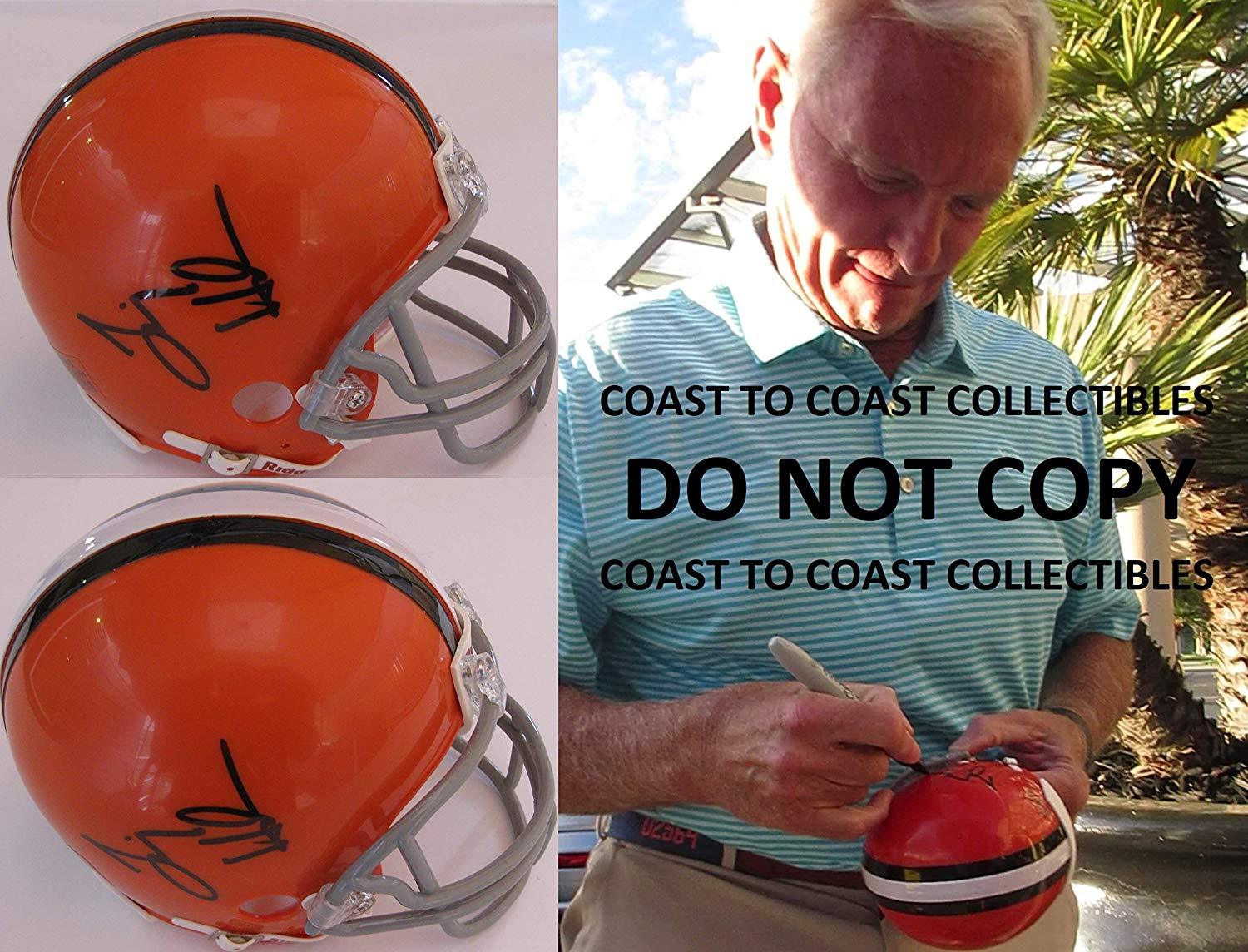 Jim Haslam signed Browns mini helmet. The helmet was signed with a black sharpie. Welcome to Coast to Coast Collectibles We are proud to deliver hand collected, authentic, autographed sports/celebrity memorabilia to collectors all over the world. All of our collectibles are personally obtained by Coast to Coast Collectibles, where we strive to set the bar in providing top quality, product, and service. *Certificate of Authenticity(coa)- Each item comes with a COA from Coast to Coast Collectibles and a Tamper-proof hologram all autographs are 100% authentic and obtained by Coast to Coast Collectibles personally. *Proof Pictures- The proof photo(s) in our listings shows the athletes/celebrity signing for us and will be included with item.