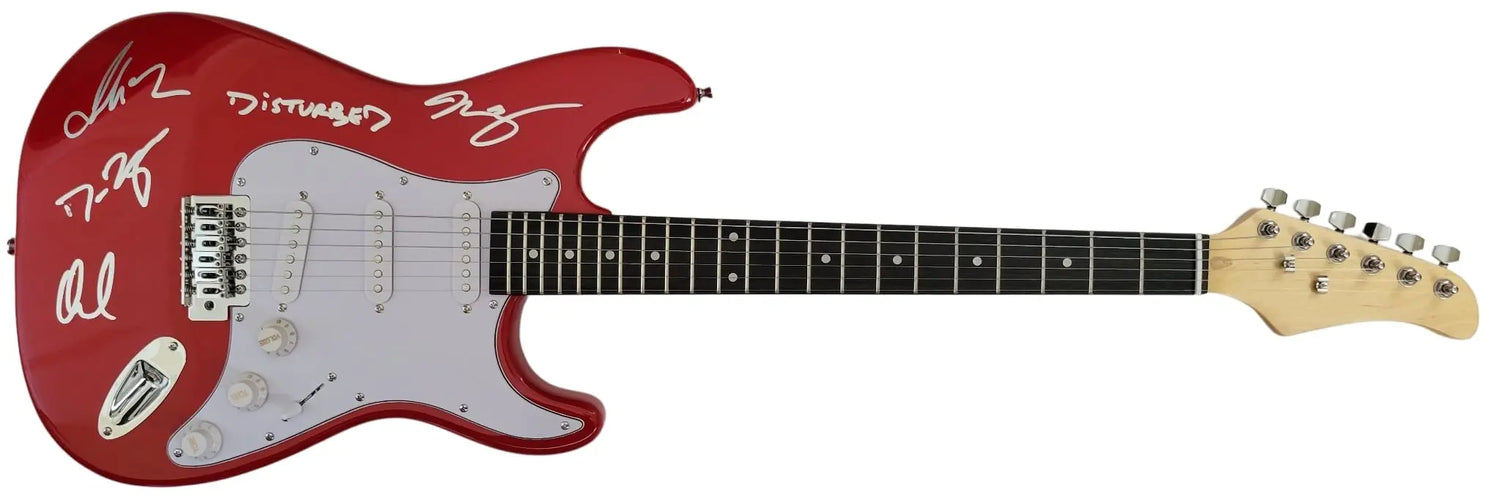 Disturbed Band Autographed Electric Guitar. David Draiman, Dan Donegan, Mike Wengren & John Moyer. The guitar was signed with a silver paint pen.. Welcome to Coast to Coast Collectibles We are proud to deliver hand collected, authentic, autographed sports/celebrity memorabilia to collectors all over the world. All of our collectibles are personally obtained by Coast to Coast Collectibles, where we strive to set the bar in providing top quality, product, and service. *Certificate of Authenticity(coa)- Each item comes with a COA from Coast to Coast Collectibles and a Tamper-proof hologram all autographs are 100% authentic and obtained by Coast to Coast Collectibles personally. *Proof Pictures- The proof photo(s) in our listings shows the athletes/celebrity signing for us and will be included with item.