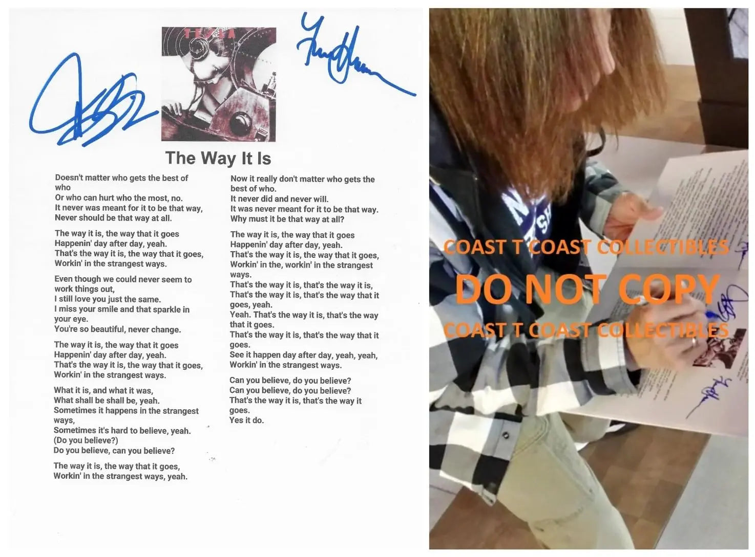 Jeff Keith & Frank Hannon Signed Tesla The Way It Is Lyrics Sheet COA Proof Autographed