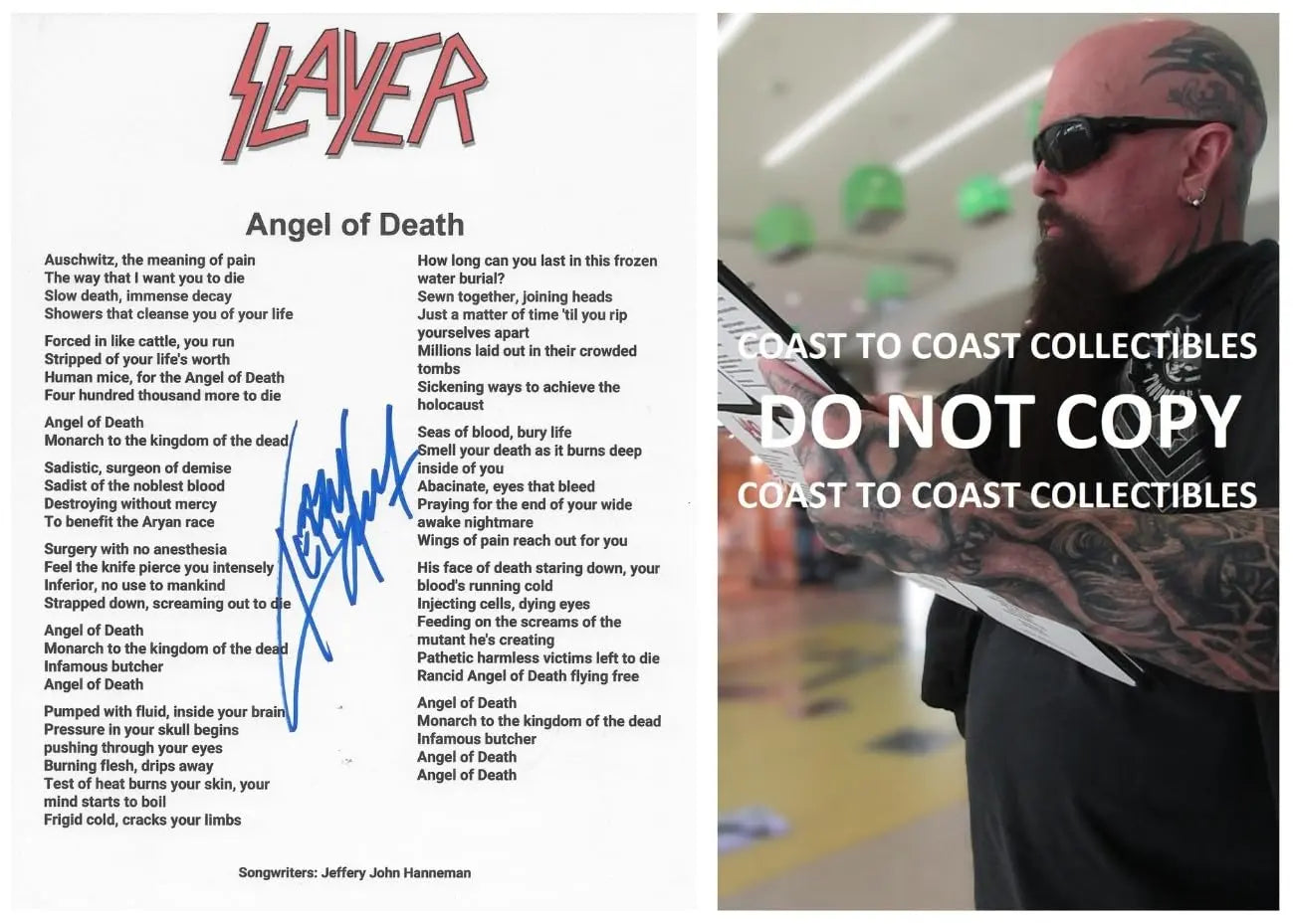 Kerry King Signed Slayer Angel of Death Lyrics Sheet COA Exact Proof Autographed
