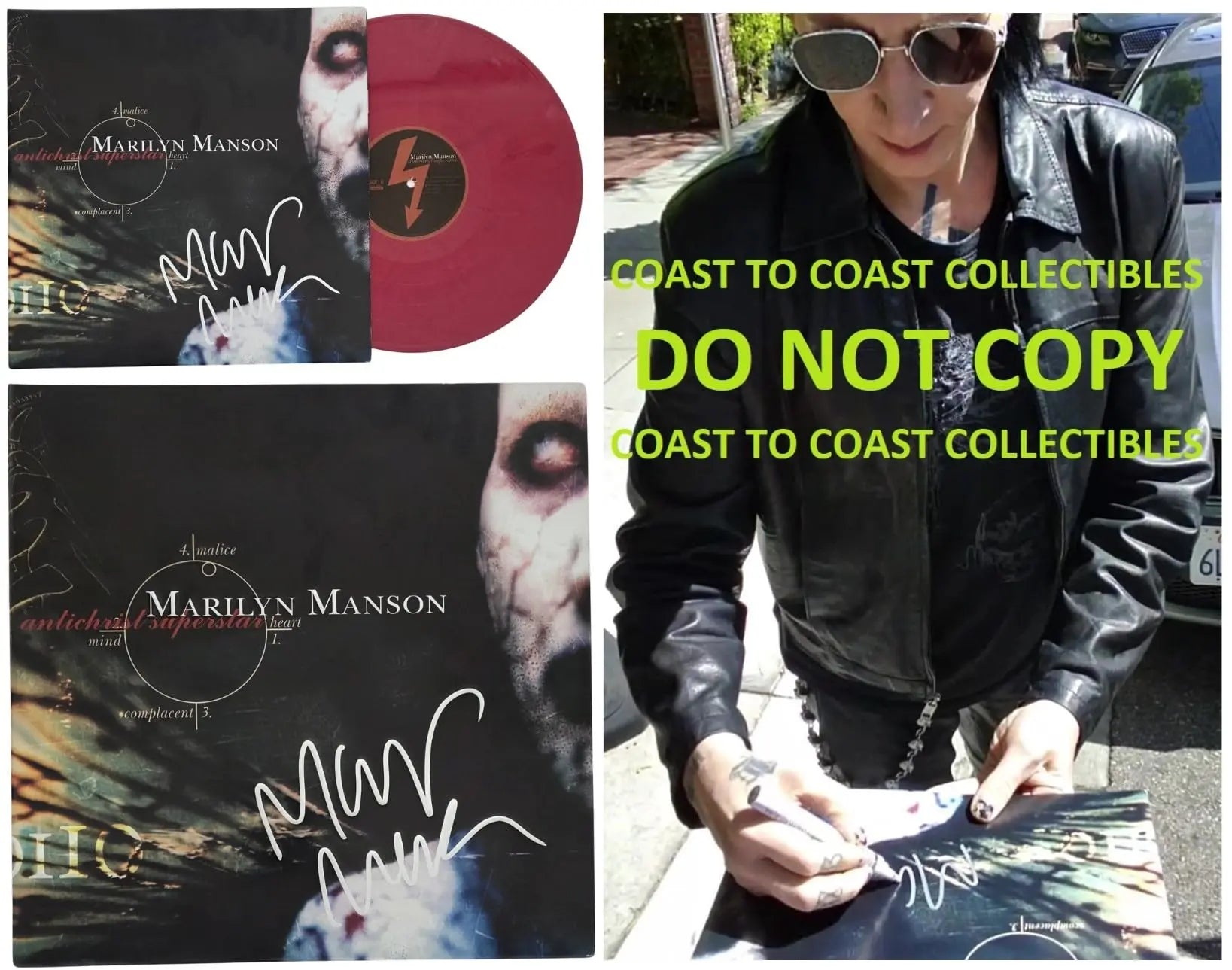 Marilyn Manson Autographed Antichrist Superstar Album.The album was signed with a silver paint pen Welcome to Coast to Coast Collectibles We are proud to deliver hand collected, authentic, autographed sports/celebrity memorabilia to collectors all over the world. All of our collectibles are personally obtained by Coast to Coast Collectibles, where we strive to set the bar in providing top quality, product, and service. *Certificate of Authenticity(coa)- Each item comes with a COA from Coast to Coast Collectibles and a Tamper-proof hologram all autographs are 100% authentic and obtained by Coast to Coast Collectibles personally. *Proof Pictures- The proof photo(s) in our listings shows the athletes/celebrity signing for us and will be included with item.