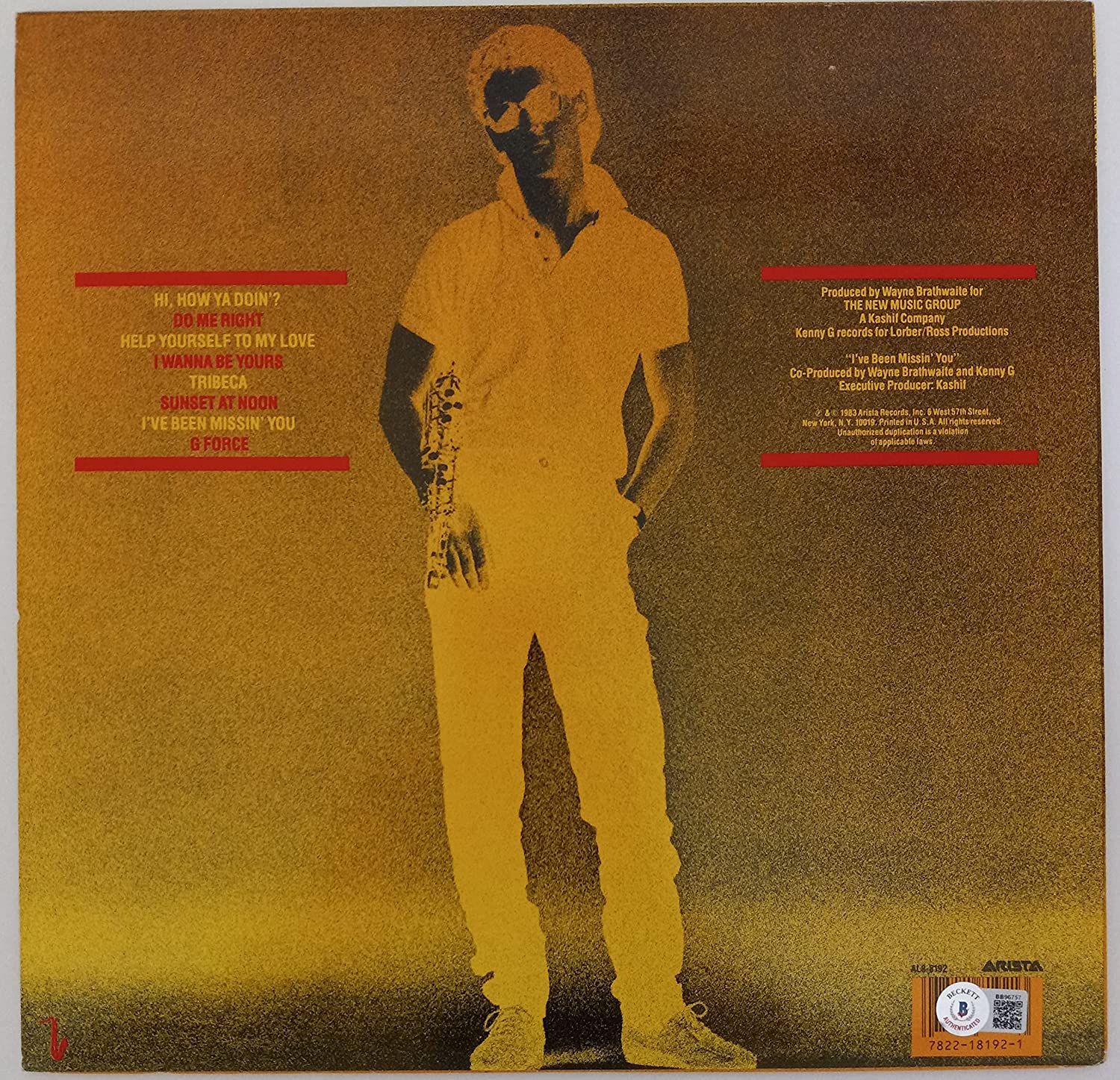 Kenny G Saxophonist signed autographed G Force album vinyl proof Beckett COA STAR