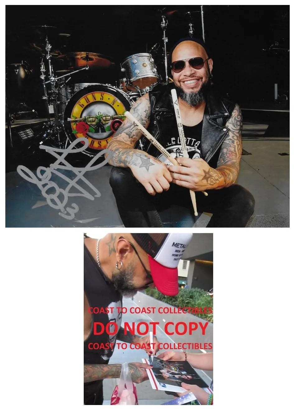 Frank Ferrer Gun N Roses drummer Signed 8x10 photo. Welcome to Coast to Coast Collectibles We are proud to deliver hand collected, authentic, autographed sports/celebrity memorabilia to collectors all over the world. All of our collectibles are personally obtained by Coast to Coast Collectibles, where we strive to set the bar in providing top quality, product, and service. *Certificate of Authenticity(coa)- Each item comes with a COA from Coast to Coast Collectibles and a Tamper-proof hologram all autographs are 100% authentic and obtained by Coast to Coast Collectibles personally. *Proof Pictures- The proof photo(s) in our listings shows the athletes/celebrity signing for us and will be included with item.