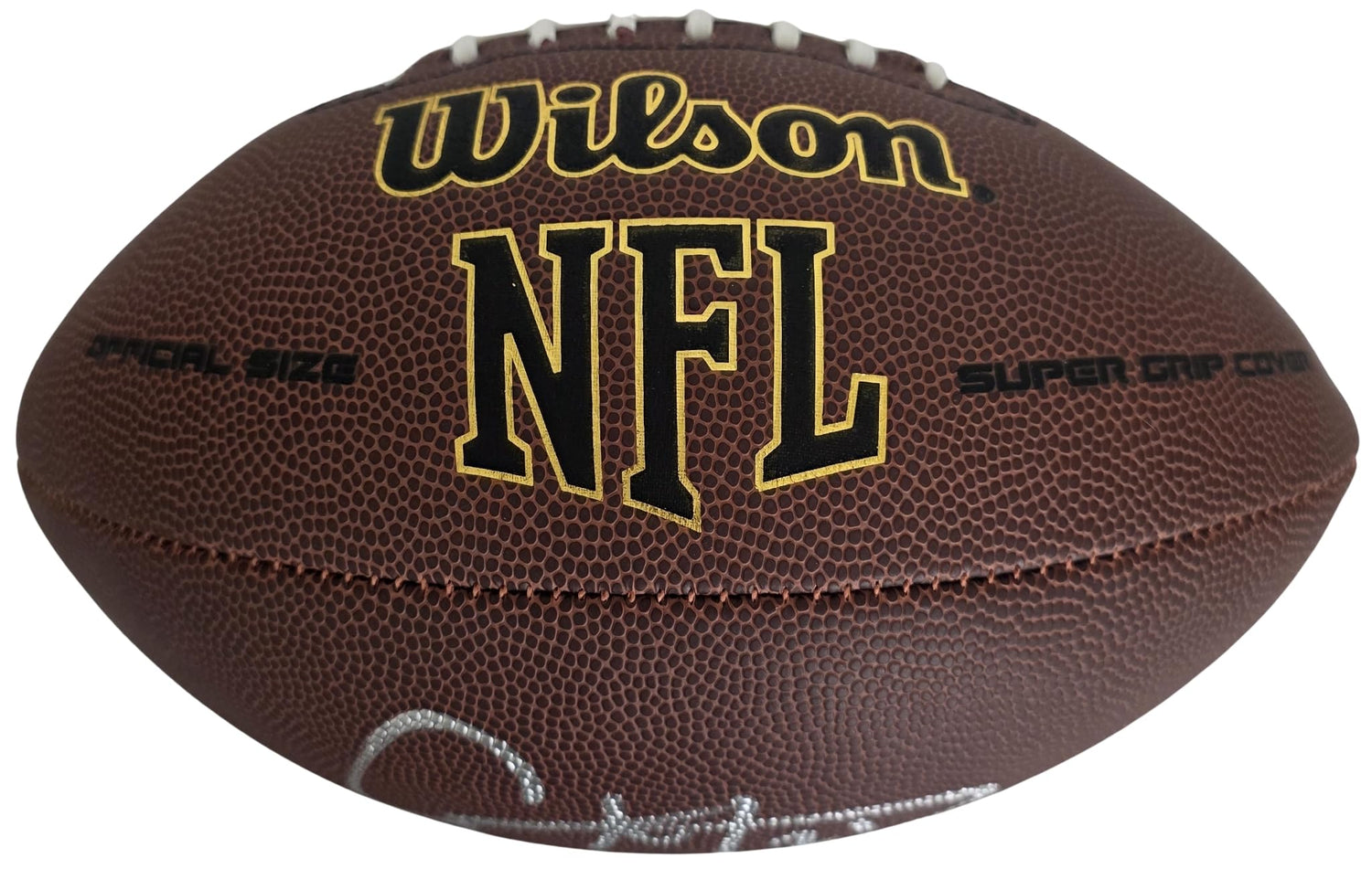 • The football was signed with a silver paint pen