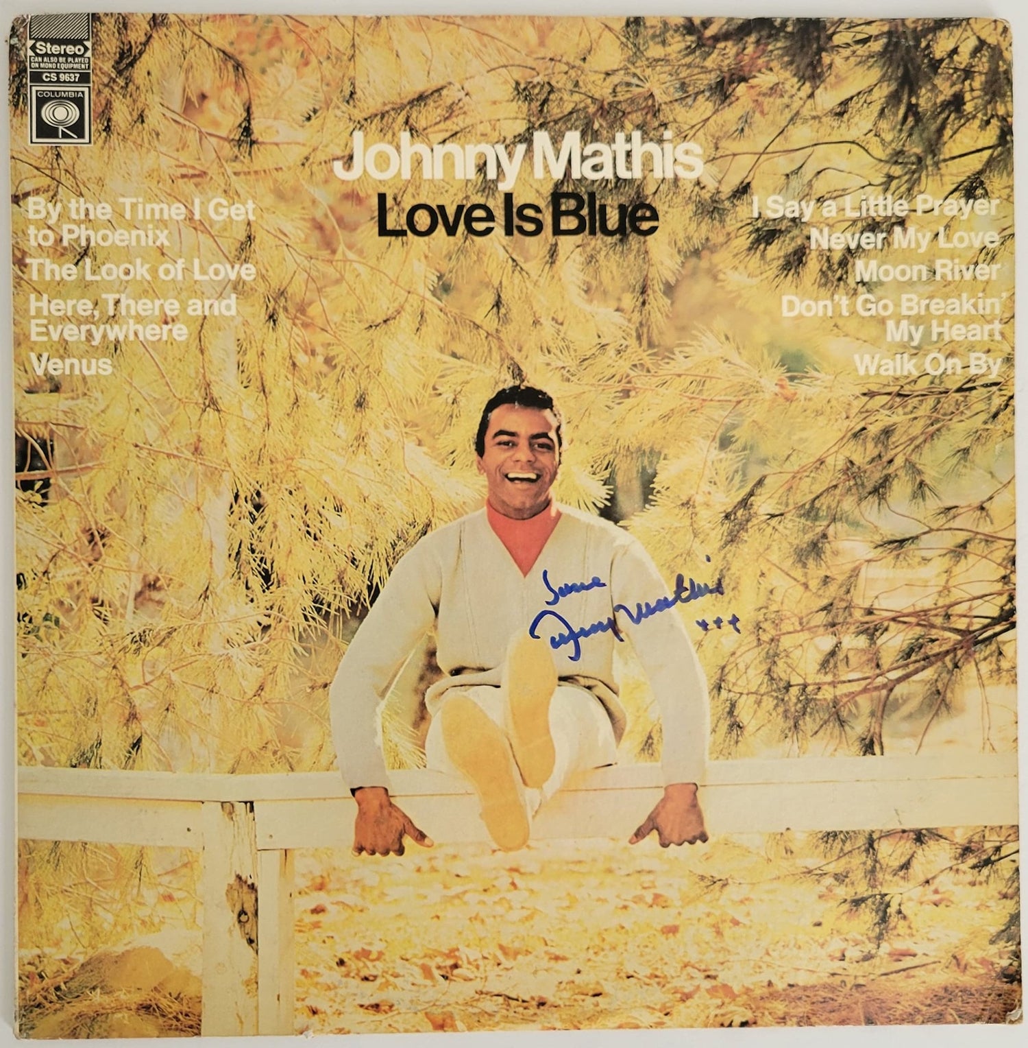 Johnny Mathis signed Love is Blue album, vinyl COA exact proof autographed STAR