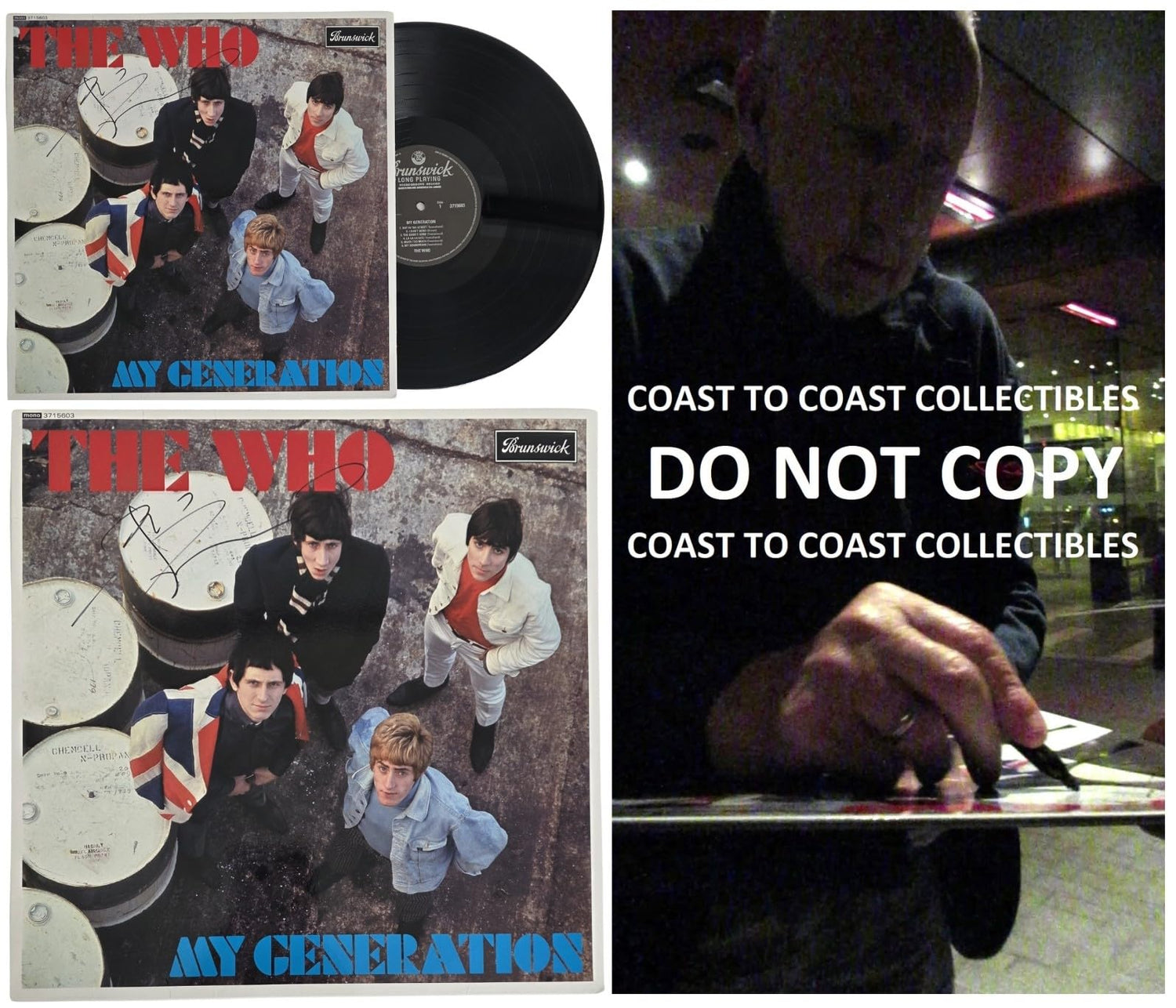 Pete Townshend Autographed The Who My Generation Album. The album was signed with a black sharpie. Welcome to Coast to Coast Collectibles, We are proud to deliver hand collected, authentic, autographed sports/celebrity memorabilia to collectors all over the world. All of our collectibles are personally obtained by Coast to Coast Collectibles, where we strive to set the bar in providing top quality, product, and service. *Certificate of Authenticity(coa)- Each item comes with a COA from Coast to Coast Collectibles and a Tamper-proof hologram all autographs are 100% authentic and obtained by Coast to Coast Collectibles personally. *Proof Pictures- The proof photo(s) in our listings shows the athletes/celebrity signing for us and will be included with item.