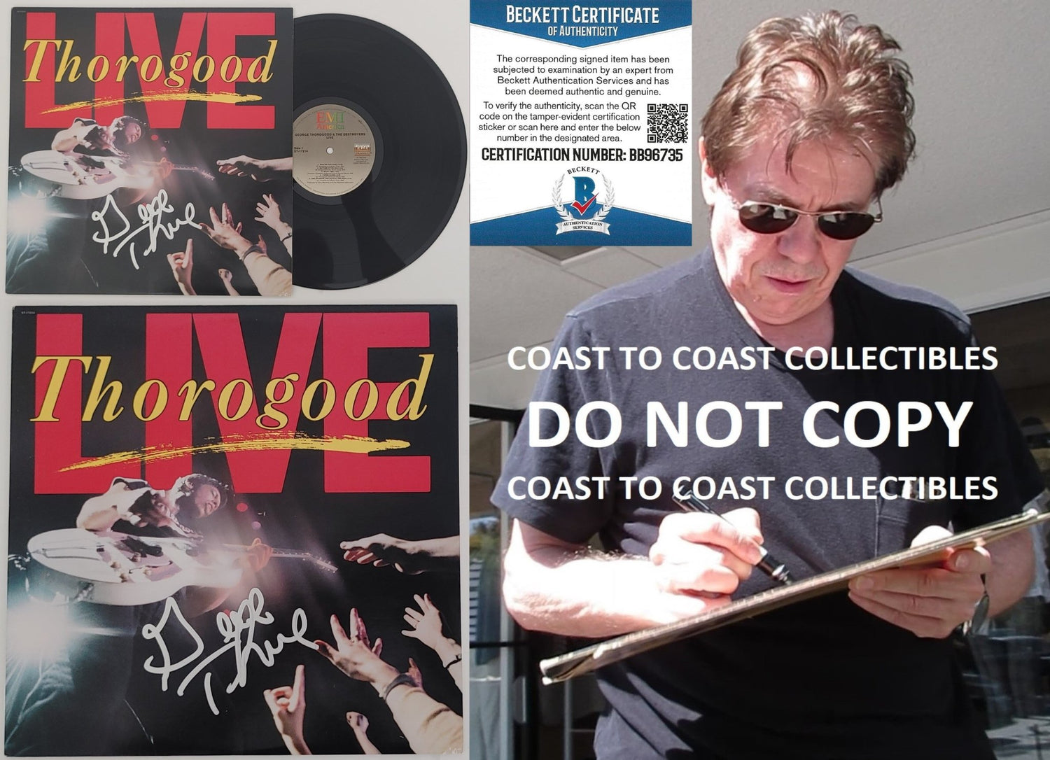 George Thorogood signed Thorogood Live album. The Album was signed with a silver paint pen..Welcome to Coast to Coast Collectibles We are proud to deliver hand collected, authentic, autographed sports/celebrity memorabilia to collectors all over the world. All of our collectibles are personally obtained by Coast to Coast Collectibles, where we strive to set the bar in providing top quality, product, and service. *Certificate of Authenticity(coa)- Each item comes with a COA from Coast to Coast Collectibles and a Tamper-proof hologram all autographs are 100% authentic and obtained by Coast to Coast Collectibles personally. *Proof Pictures- The proof photo(s) in our listings shows the athletes/celebrity signing for us and will be included with item.