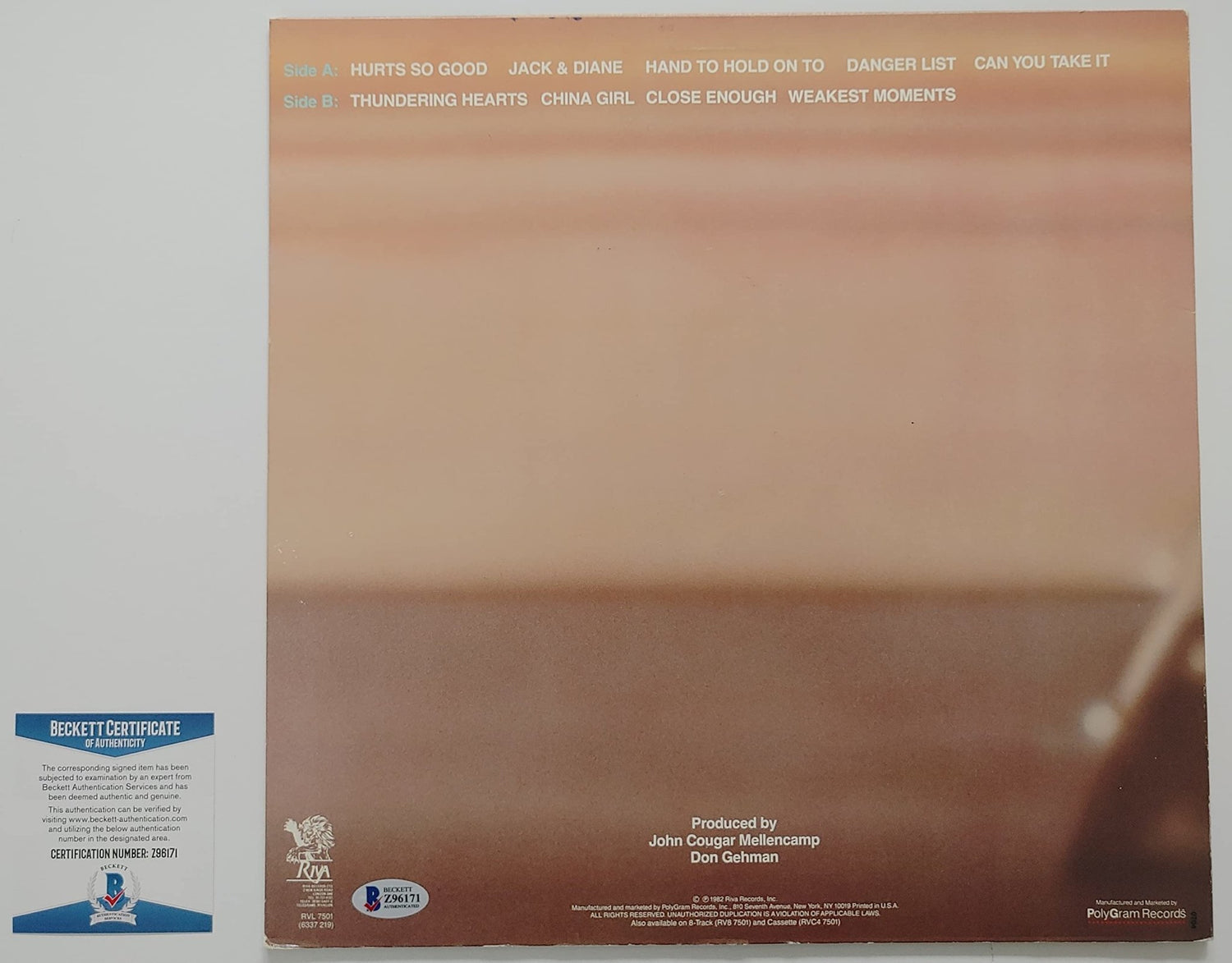 John Cougar Mellencamp signed American Fool album vinyl record proof Beckett COA STAR