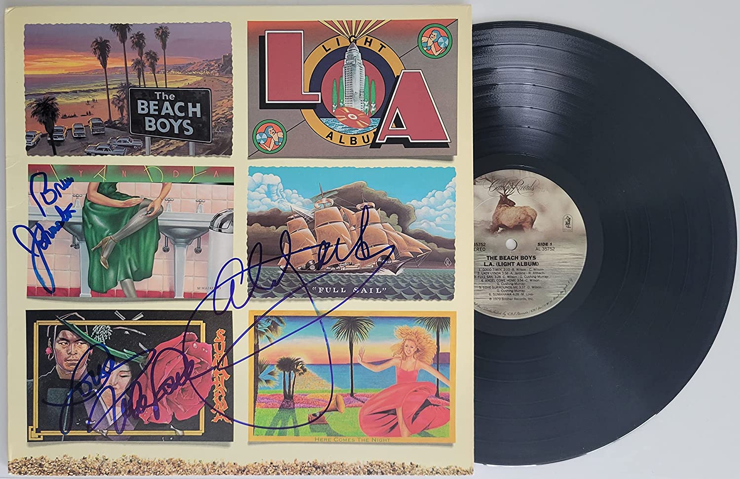 Mike Love Al Jardine Bruce Johnston signed Beach Boys LA album,proof. Vinyl Record,COA.autographed STAR