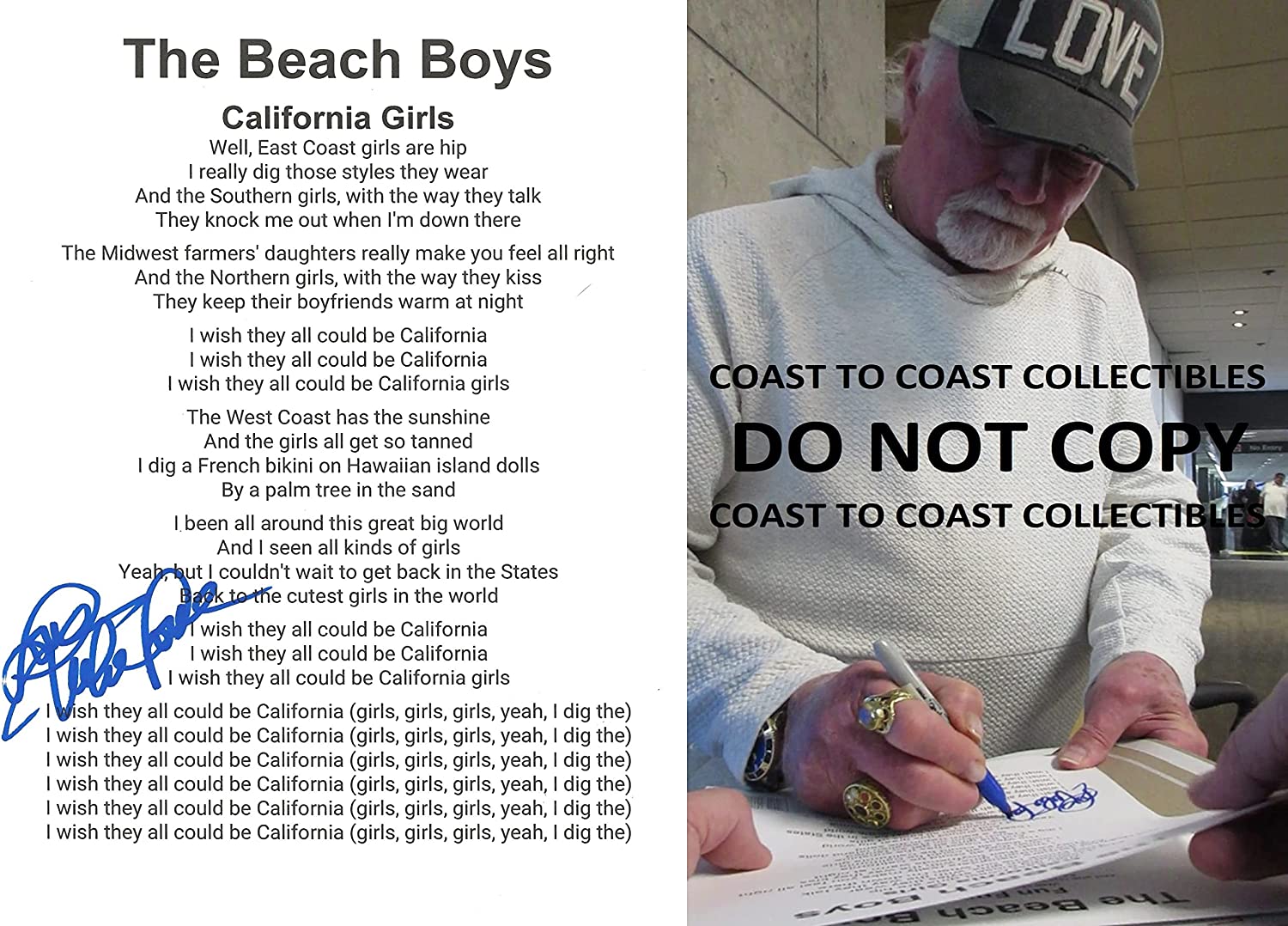 Mike Love signed Beach Boys California Girls Lyrics sheet autograhed COA Proof STAR